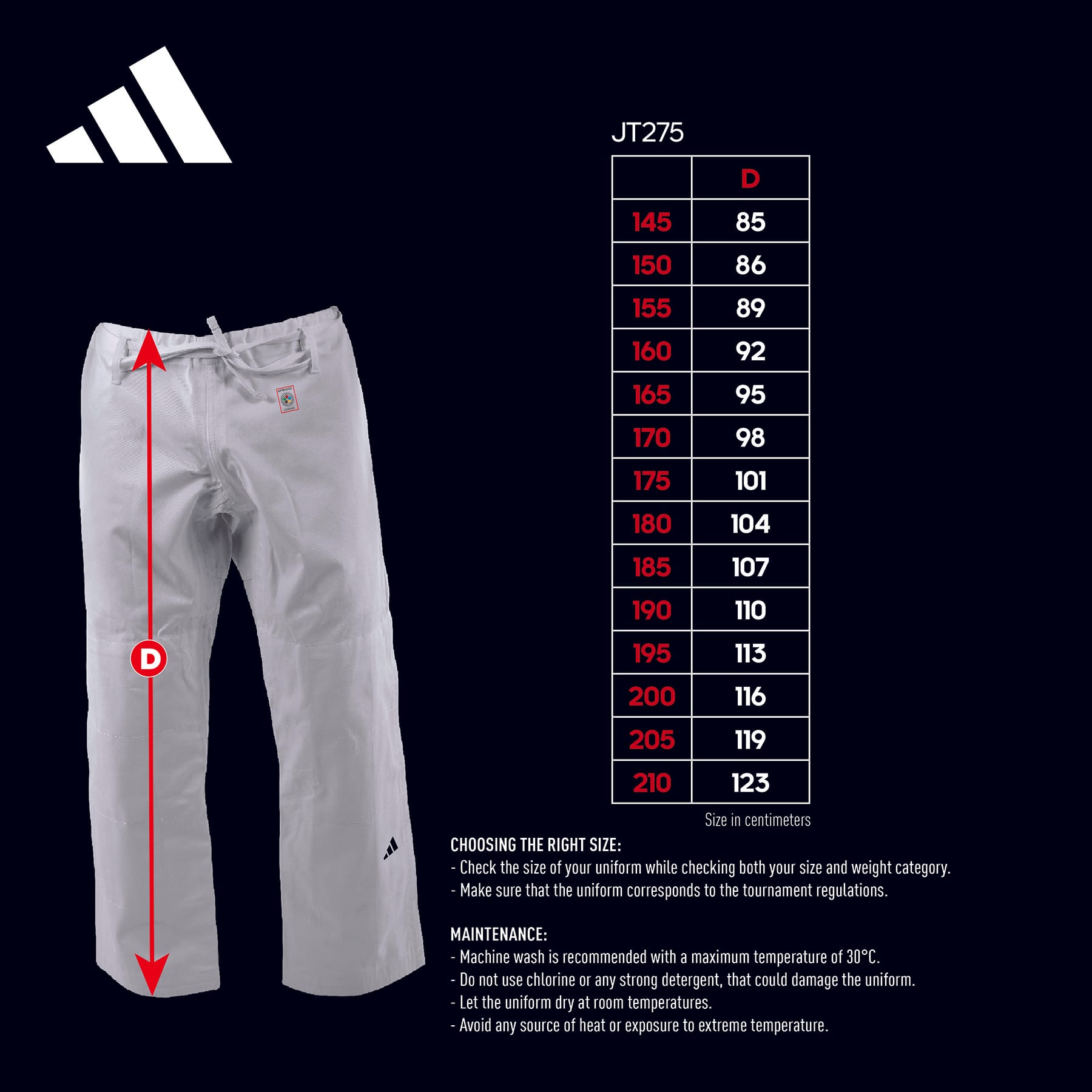 De stoffencombinatie van 80% katoen en 20% polyester zorgt ervoor dat deze Adidas-judobroek nauwelijks krimpt en dat deze 20% sterker is dan een volledig katoenen judobroek. Een prettig weetje, nietwaar? Bovendien draagt deze judobroek het rode of groene IJF-label, waardoor je het prima kunt combineren met bijvoorbeeld je Adidas IJF-judopak.